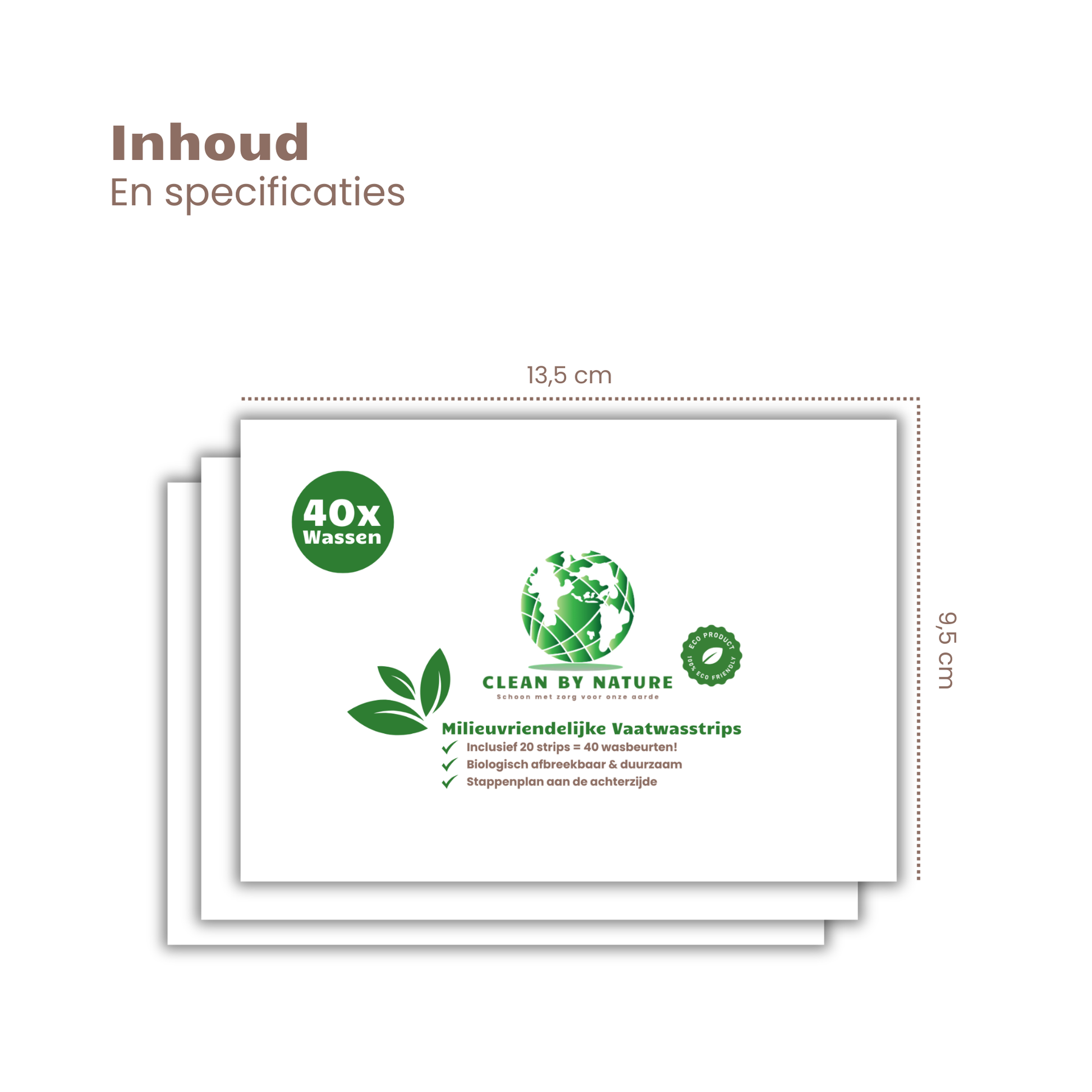 Met één verpakking van 20 strips kunt u 40 keer afwassen – dat is gemiddeld twee maanden bij dagelijks gebruik. Compact, voordelig én duurzaam.