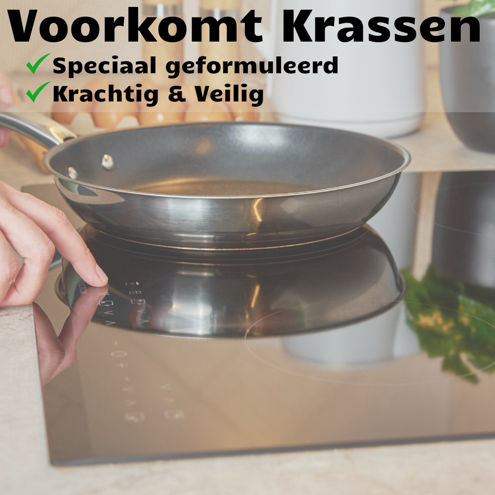 Veilig voor alle inductiekookplaten, de reiniger is ideaal voor dagelijks gebruik en biedt snel en effectief onderhoud zonder schade.